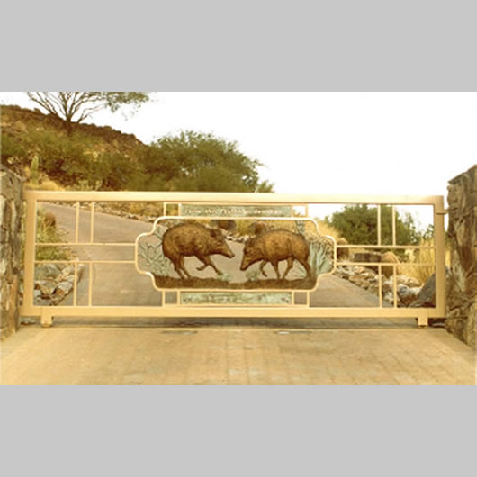 To design an electronic gate incorporating a pair of life-sized javalinas in a double-sided basrelief.