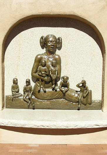 I received the commission to sculpt a Story Teller in the tradition of the Pueblo People of NM to be placed in the columbarium section of French Cemetery in Albuquerque.