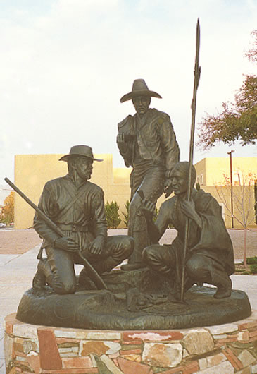To design and produce a bronze sculpture depicting a tri-cultural subject with a business theme commemorating the centennial celebration of New Mexico State University. As the artist, I chose an early trade scene circa 1850 in Northern New Mexico as my general subject. To insure the historical accuracy of my subject, I conducted extensive research at the Palace of the Governors Musuem in Santa Fe, as well as the Ernest Thompson Seton Museum at the Philmount Scout Ranch in Cimarron, New Mexico.