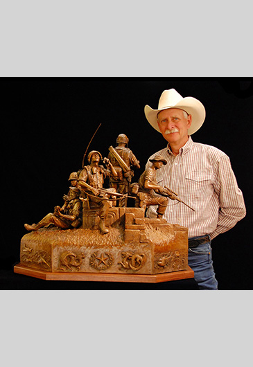 This maquette (model) was designed to present to the Texas Vietnam Veterans Association committee as part of the commission to create a larger than life size sculpture to be erected on the Texas State Capitol grounds. Accuracy of detail and size of the five figures was essential as the foundry enlarged the sculpture from the maquette using digital three-dimensional printing techniques.