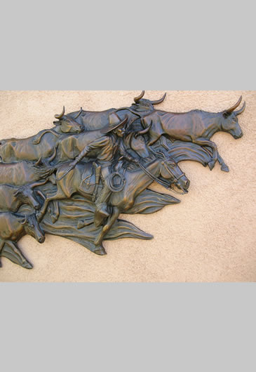 There is an old western cowboy ballad called "Ghost Riders in the Sky" written by Stan Jones in 1948. I have always dreamed of sculpting a bronze based on the lyrics of this song. This sculpture is actually the front part of the bas relief. I wanted to enlarge a portion to show potential buyers what the scale would be. I decided that it could stand on it's own and I titled it "Gifts from the Gringo", it is a California style vaquero circa early 1800's. He is a bandito rustling cattle.