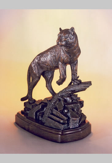 This commission gave me the opportunity to research the very illusive mountain lion that is rarely seen by man in the wild. The gentleman who commissioned this project is very knowledgeable about lions and I studied my subject from the inside out to get it right. I began by sculpting the muscular anatomy first then added the skin. It gave me a good deal of insight about the power and agility of this animal.